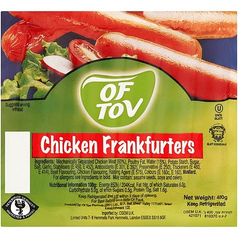 | Of Tov Cocktail Chicken Frankfurters (400g) | £4.25 | £4.25 | £0.00 No change |