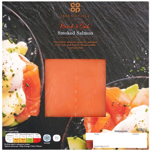 | Co-op Irresistible Beech & Oak Smoked Scottish Smoked Salmon (100g) | £5.45 | £4.50 | - £0.95 -17.4% decrease |