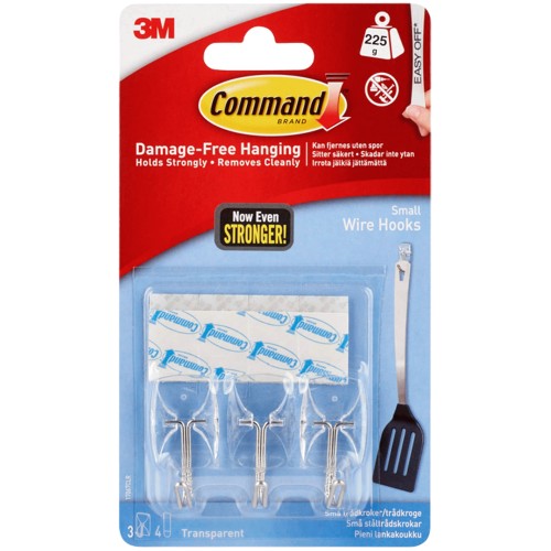 Clear Utensil Hooks 3 Hook 4 Strips Small Wire Hooks (15.4g)