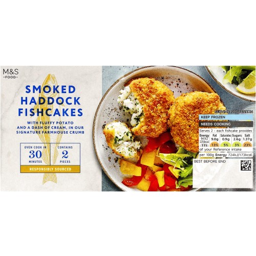 | M&S 2 Smoked Haddock Fillets Fishcakes Frozen (260g) | £3.50 | £3.50 | £0.00 No change |