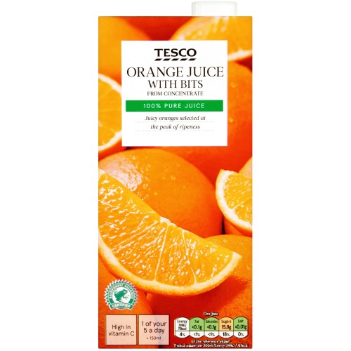 | Tesco Pure Orange Juice With Bits (1l) | £1.25 | £1.75 | + £0.50 40% increase |
