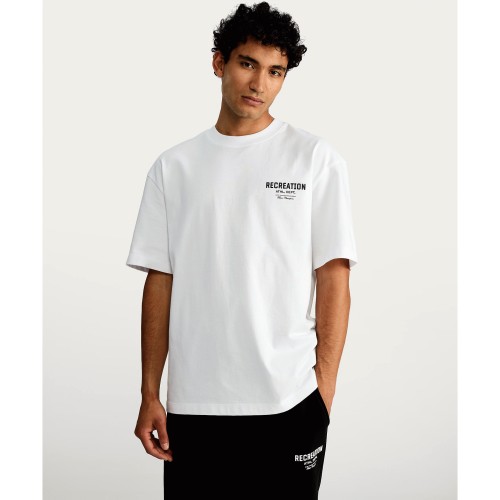 Pure Cotton Oversized Recreation Athl. Dept. Slogan T-Shirt in White
