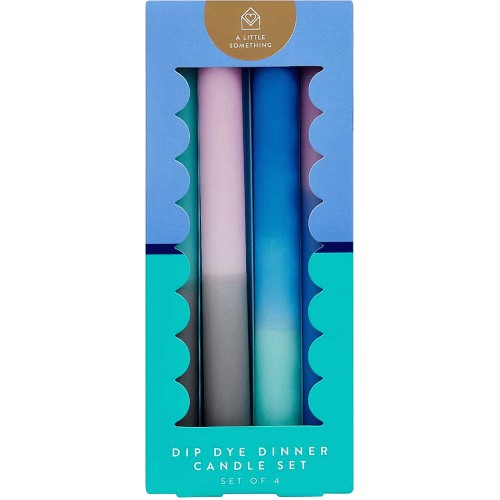 Set of four unscented candles in ombre shades of blues, pinks and grey