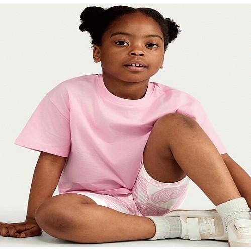 F&F Girls Pure Cotton Heart Print T-Shirt and Cylcing Shorts Set in Pink