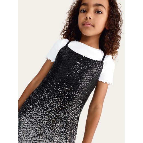 F&F Girls Sequin Dress and Cotton Rich T-Shirt Set in Silver