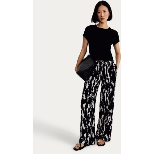 Abstract Print Wide Leg Trousers in Multi Black