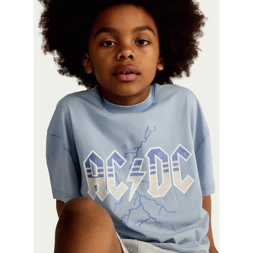 AC DC Pure Cotton Lightning Bolt Print T-Shirt in Blue