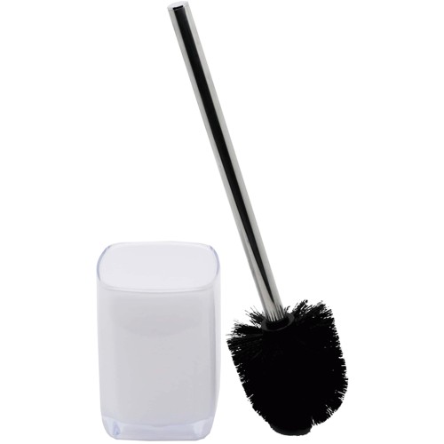 Faux Hessian Plastic Round Bathroom Toilet Brush Set White