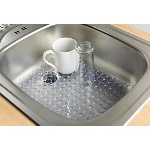 "This is a perfect fit and has circular cushioned pads as well as drainage holes but you would regularly remove to clean it/under it anyway"