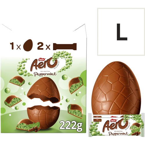 Mint flavoured milk chocolate egg with two bars of Aero peppermint