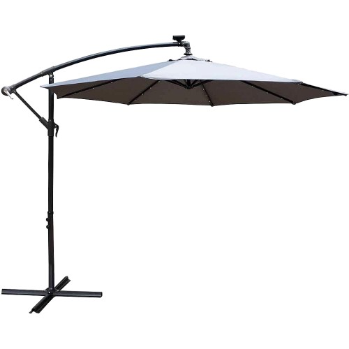 Hanging Grey Parasol with Solar Powered LED Spotlights
