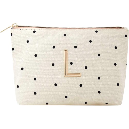 Cream with Black Polka Dot 'L' Cosmetic Purse