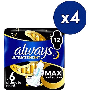 Sanitary Towels Ultimate Night (Size 6) Wings 12 Pads Bundle