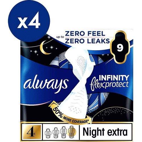 Infinity FlexProtect Sanitary Towels Size 4 Night Extra Wings Bundle
