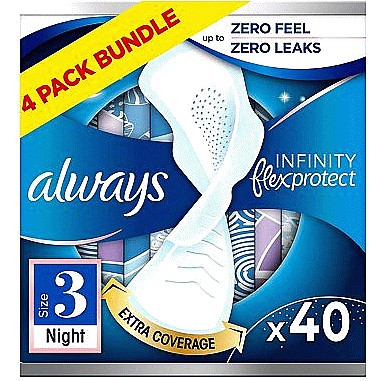 Infinity Night (Size 3) Sanitary Towels Wings 10 Pads Bundle