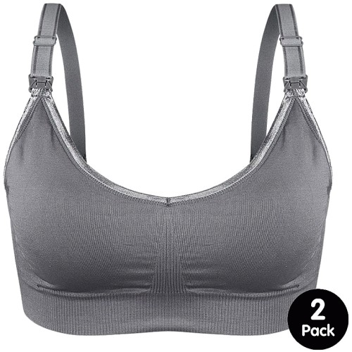 Soft & Comfortable XL Wireless Nursing Bra 2pc Grey