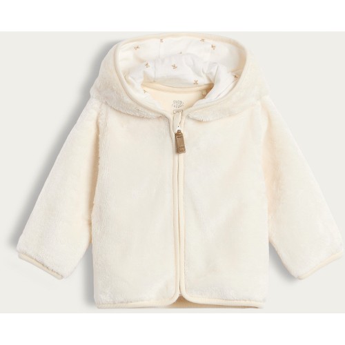 Fleece Textured Floral Print Hooded Jacket in Blue