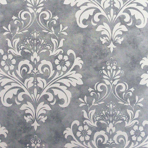 Baroque Damask Grey and White Wallpaper