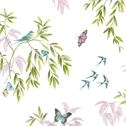 Halcyon Days Wallpaper Cream Multi Glitter Textured Birds Butterfly