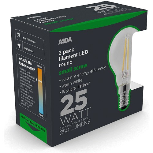 LED Filament Candle 250 Lumens ES Light Bulb 2w