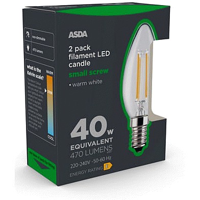 LED Filament Candle Small Screw Clear Lightbulb 40w