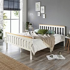 Beds Solid Wood White Bed Frame Choice of Natutral Wood Tops All Sizes