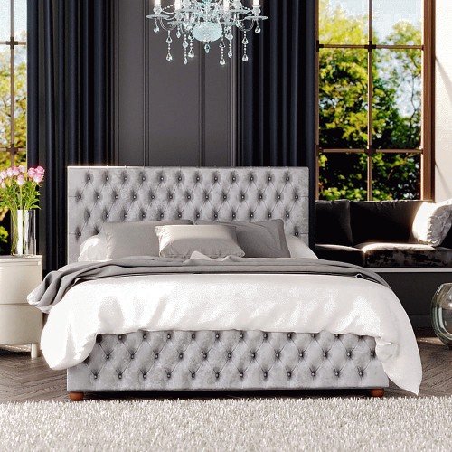 Aspire Olivier Double Silver Mirazzi Velvet Ottoman Bed