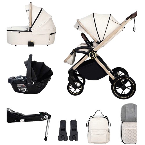 Newly 4in1 Travel System (MINK PRO R129 Car Seat + ISOFIX Base) Beige