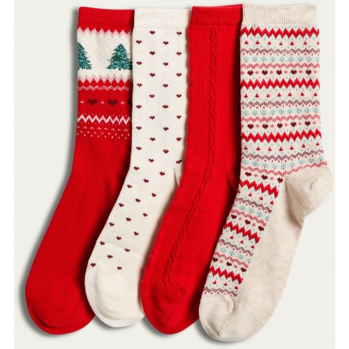 4-Pack Cotton Rich Christmas Print Ankle Socks in Pink