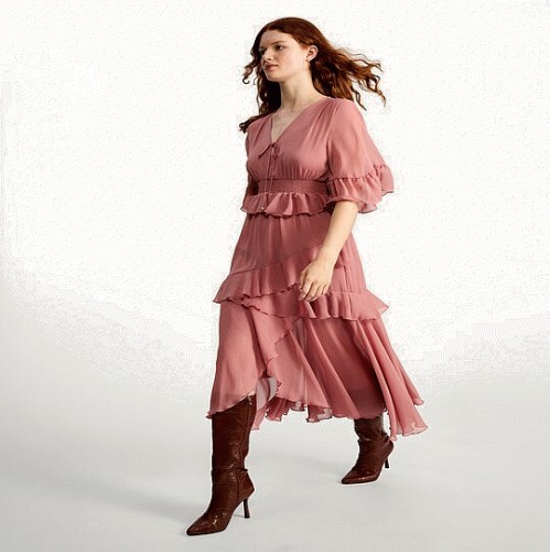 Green Watercolour Printed Wrap Pleated Midi Dress