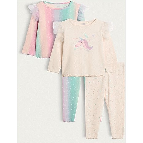 Girls 2-Pack Cotton Rich Unicorn Pyjama Set in Cream Multi
