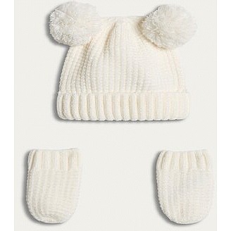 Baby 2-Piece Chenille Pom Pom Hat and Mittens Set in Cream