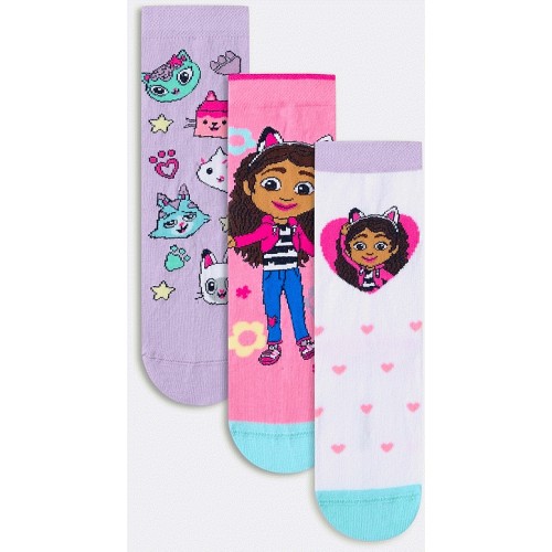 Gabby's Dollhouse 3-Pack Cotton Rich Character Print Ankle Socks in Pink