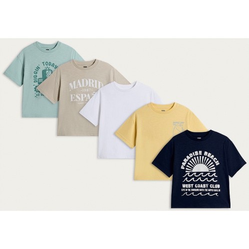 F&F Boys 5-Pack Pure Cotton Printed T-Shirts in Multi