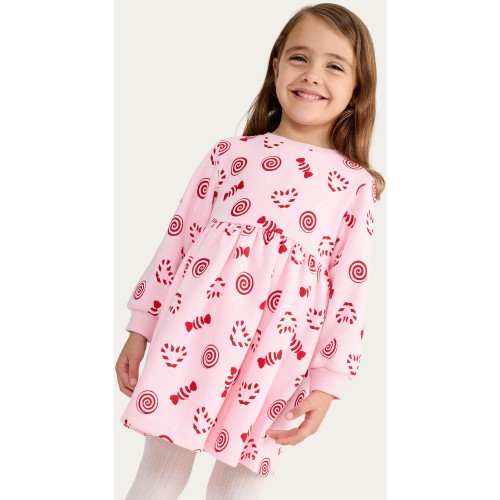F&F Girls Cotton Rich Candy Print Sweat Dress in Pink