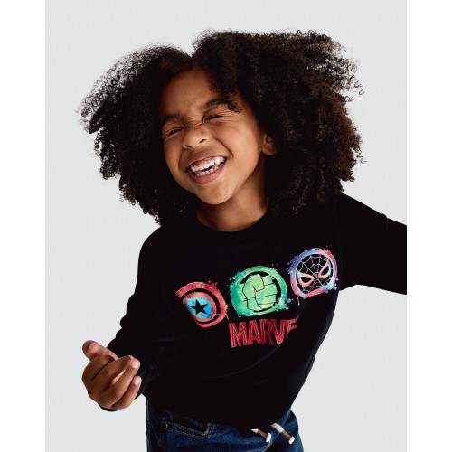 Marvel Avengers Print Cotton Rich Sweatshirt in Black