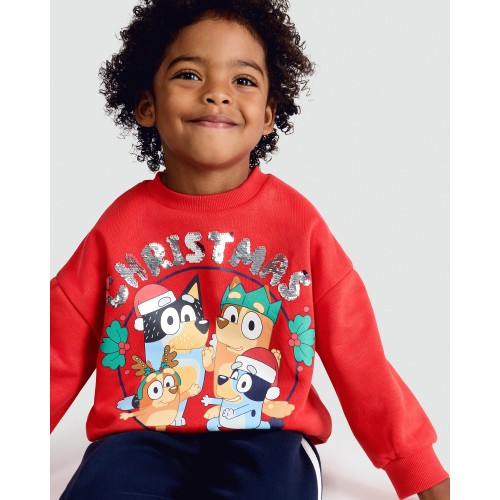 Bluey Cotton Rich Christmas Print Sweatshirt in Red