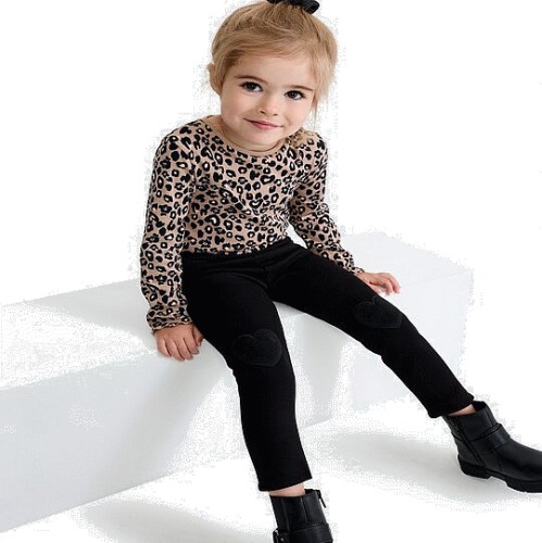 F&F Girls Heart Patch Fleece Lined Leggings in Black