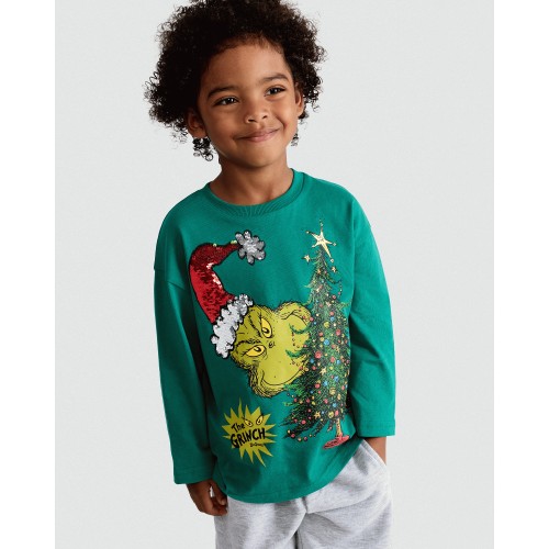 The Grinch Pure Cotton Christmas Tree Print Top in Green