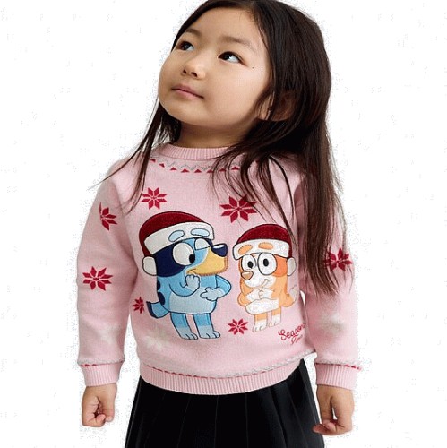 Bluey Seasonal Fun Print Knitted Jumper in Pink