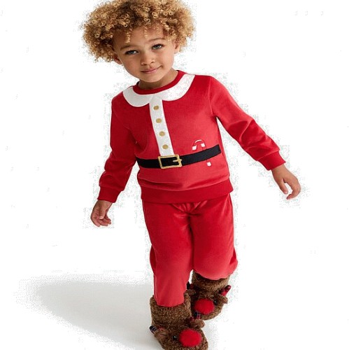 Minky Fleece Santa Sweatshirt and Cuffed Joggers Pyjamas in Red