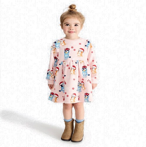 Bluey Christmas Print Long Sleeved Sweat Dress in Pink