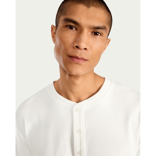 Pure Cotton Henley Long Sleeved Top in Ecru