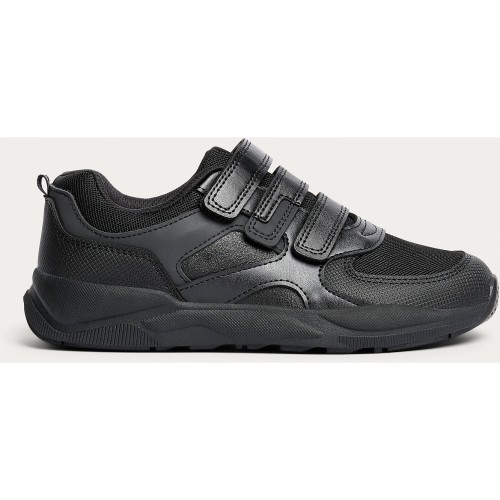Boys Faux Leather Touch Strap Fastening Trainers in Black