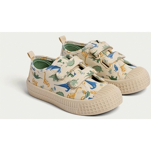 Boys Dinosaur Print Touch Strap Fastening Trainers in Multi