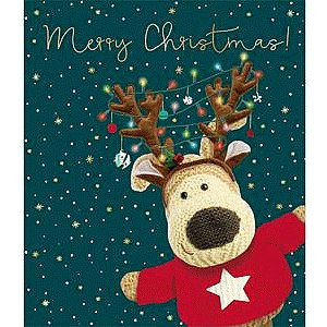 Boofle With Christmas Antlers Open Merry Christmas Design Greeting Card