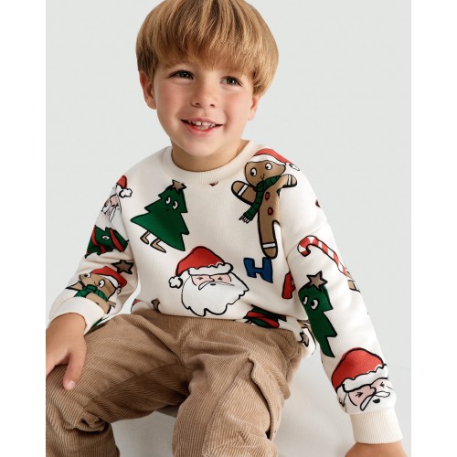 F&F Boys Cotton Rich Christmas Motif Jumper in Cream