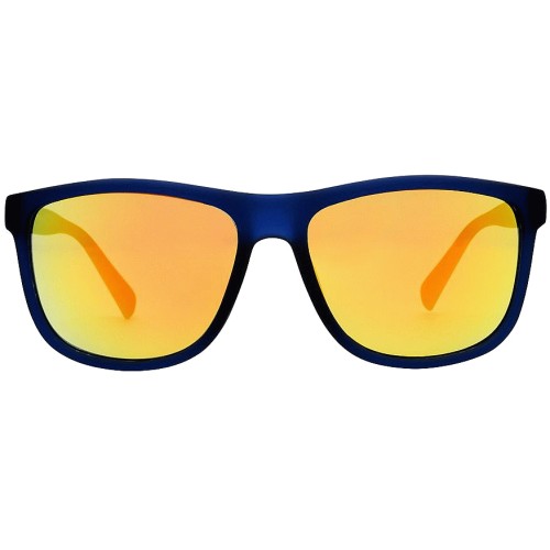 Mens Sunglasses Rubberized Dark Blue Retro with Orange Mirror