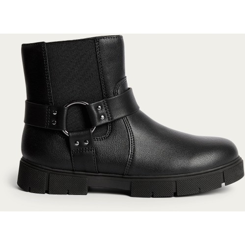 Girls Strap Buckle Detail Chunky Ankle Boots in Black