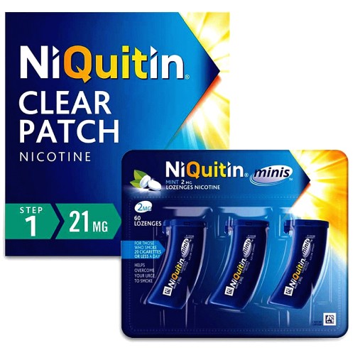 Bundle: NiQuitin Clear Patches 21 mg Step 1 (7 Patches) & Minis Mint Lozenges (60 Lozenges)